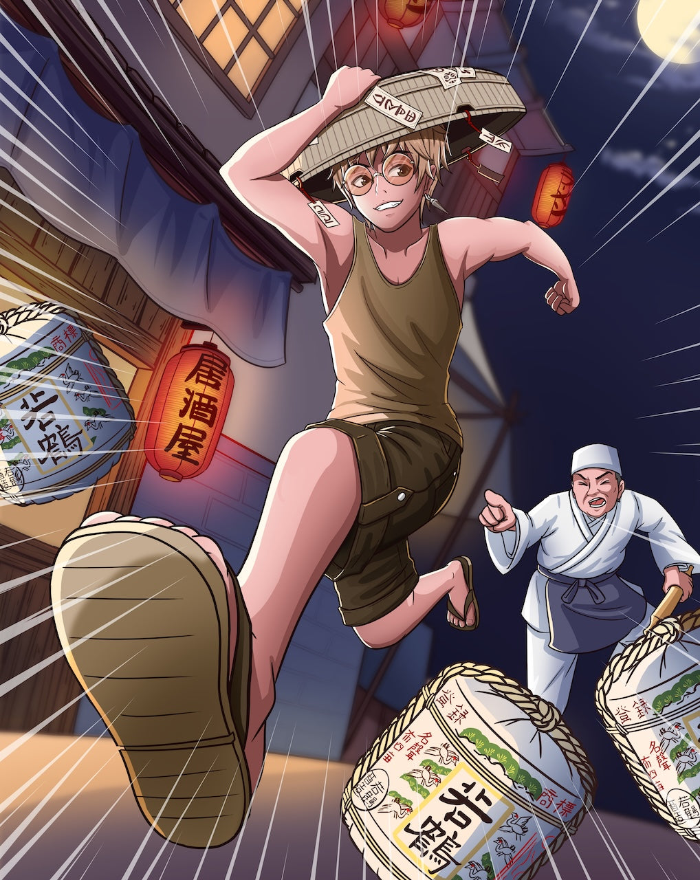 CRASH. Tenjiro’s body slammed into a modest tower of decorative sake barrels as he took the turn coming out of the narrow alleyway too tightly, the ramen shop proprietor hot on his heels. “Stop! Thief!” The noodle master shouted after Tenjiro, or ‘Ten’ as his acquaintances knew him.